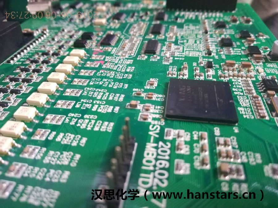 某客戶生產一款設備控制板,上面有一款BGA芯片,芯片尺寸20*20mm,錫球直徑0.35mm,錫球間距0.45mm。客戶在產品的生產工藝中發現有虛焊的問題。通過了解客戶BGA芯片的情況之后,漢思化學給客戶推薦了BGA固定膠HS710,用于底部填充制程,為客戶解決產品虛焊的問題。