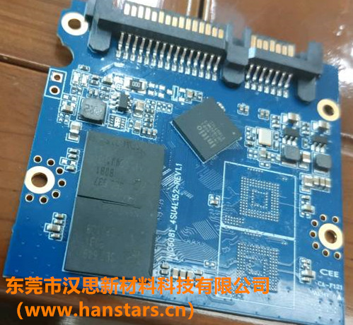 某客戶從事SSD固態硬盤產品研發與生產,需要在固態硬盤主控芯片上使用底部填充膠進行BGA填充。主控芯片的尺寸:1CM*1CM,錫球數:155,球距:0.35MM,球徑0.25MM。固化方式:7MIN@150℃。根據客戶的應用要求,漢思化學推薦使用底部填充膠HS710,客戶使用后反映滲透效果很好。