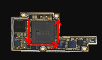 底部填充膠因毛細管虹吸作用按箭頭方向自動填充。通常情況下常用“一”型和“L”型,和“U”型作業,通過表面觀察,可以看到會形成底部填充初步效果。
