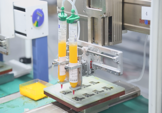 公司自主研制Underfill 底部填充封裝材料,品質(zhì)媲美國際先進水平,具有粘接強度高,適用材料廣,黏度低、固化快、流動性高、返修性能佳等諸多優(yōu)點,已被廣泛應(yīng)用于新能源汽車、智能終端、消費類電子的手機藍(lán)牙模塊芯片與智能穿戴芯片填充、指紋識別模組與攝像模組芯片封裝、鋰電池保護板芯片封裝等生產(chǎn)環(huán)節(jié)上,可有效起到加固、防跌落等作用。使得產(chǎn)品的整體可靠性得到了大幅度提高。